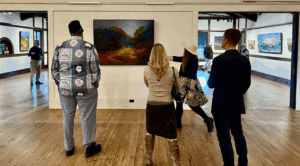 On December 16-17, 2023, the Link Art Gallery hosted the opening of resident artist Julie Malone’s exhibition “Outside Within,” a celebration of Malone’s atmospheric landscape oil paintings. Viewers had the opportunity to witness Malone make her signature works of art using a rich color palette in the adjacent Garden Room. The 2023 Julie Malone exhibition, open from December 9 to January 30 was the first artist exhibit at the newly renovated Link Art Gallery, a groundbreaking moment for the Link organization.