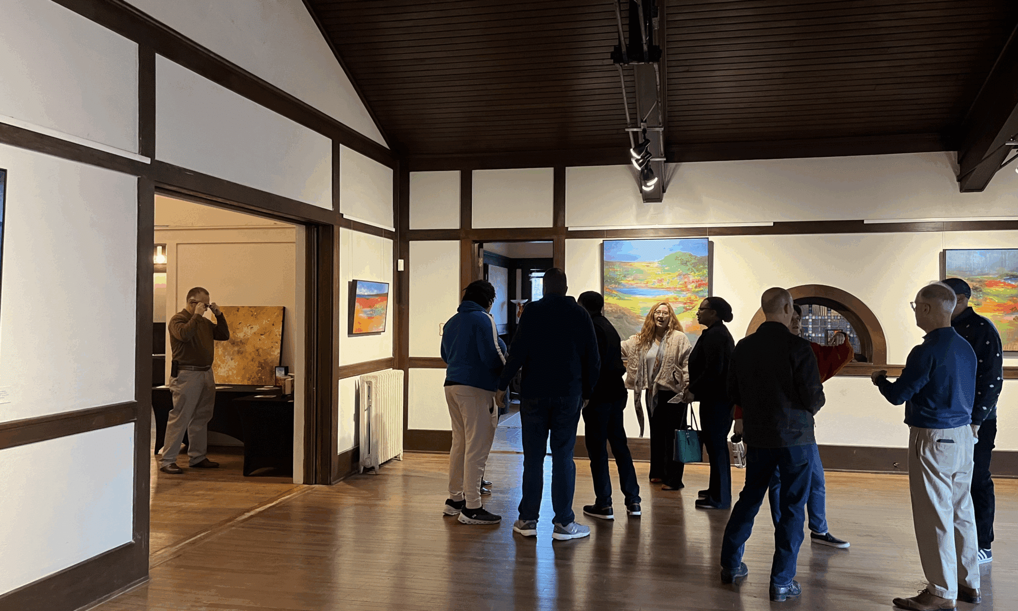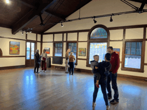 On December 16-17, 2023, the Link Art Gallery hosted the opening of resident artist Julie Malone’s exhibition “Outside Within,” a celebration of Malone’s atmospheric landscape oil paintings. Viewers had the opportunity to witness Malone make her signature works of art using a rich color palette in the adjacent Garden Room. The 2023 Julie Malone exhibition, open from December 9 to January 30 was the first artist exhibit at the newly renovated Link Art Gallery, a groundbreaking moment for the Link organization.
